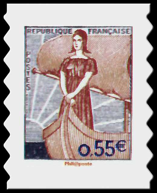 Marianne à la nef - 2008, venant de carnet autoadhésif. 2 bandes de phosphore