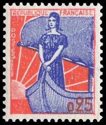 Marianne à la nef - 1960 - 25 c. bleu et rouge