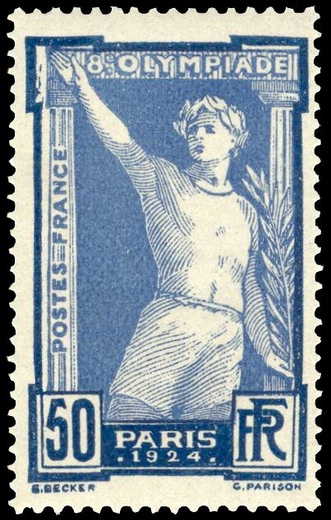 Les Jeux olympiques d'été de 1924 à Paris, nommés aussi Jeux de la VIIIe olympiade, sont la septième édition des Jeux olympiques modernes. Le 5 juillet 1924, la cérémonie d'ouverture se tient au Stade de Colombes devant 40 000 spectateurs. 44 nations prennent part aux Jeux d'été de 1924. L'Allemagne n'est pas invitée par le comité d'organisation, qui prétexte qu'il n'était pas en mesure d'assurer la sécurité de la délégation allemande. La Poste a émis à cette occasion, le 1er Avril 1924, quatre timbres (YT 0183, 0184, 0185 et 0186) de 10c à 50c) en impression typographique.