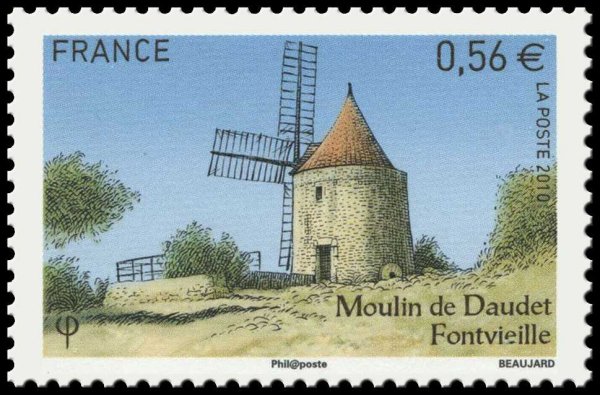 Le 15 juin 2010, un nouveau timbre est émis dans le cadre de la série "Les moulins". Créé par Yves Beaujard, il représente le même moulin de Fontvieille. Ce timbre, destiné à l'affranchissement des lettres de 20 grammes pour la France, a été tiré à 1 650 000 exemplaires. Contrairement au moulin de 1936, celui-ci est une propriété privée et non communale. Source Wikitimbres.fr