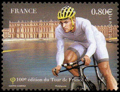 Cycliste portant un maillot blanc et le château de Versailles. 100e édition du Tour de France - 2013