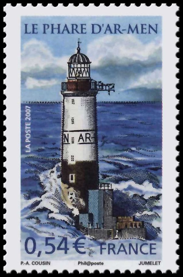 Phares, repères de nos côtes. Phare de d'Ar-Men. Validité permanente. 2 bandes de phosphore - Émis uniquement en carnet. - 2019